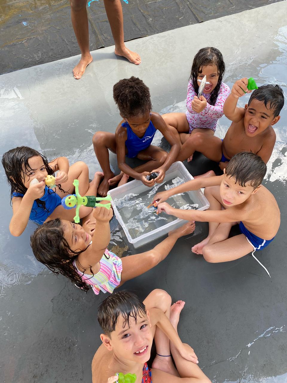 Os pequenos aproveitam oficinas criativas, brincadeiras ao ar livre, jogos cooperativos e muito mais